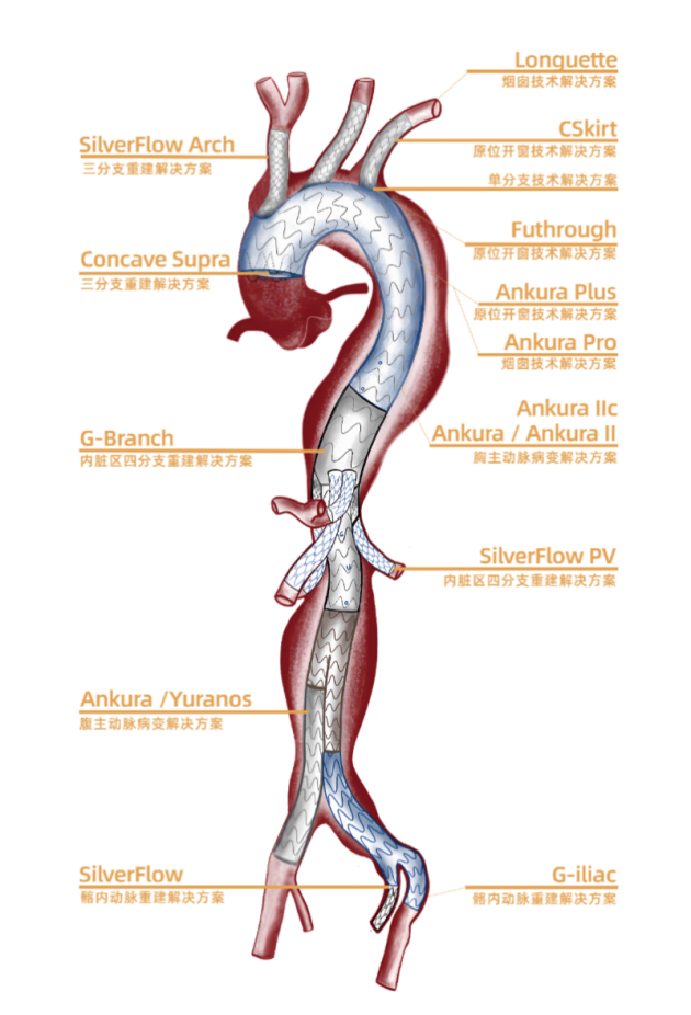 先健弓部分支重建原位开窗技术创新产品矩阵