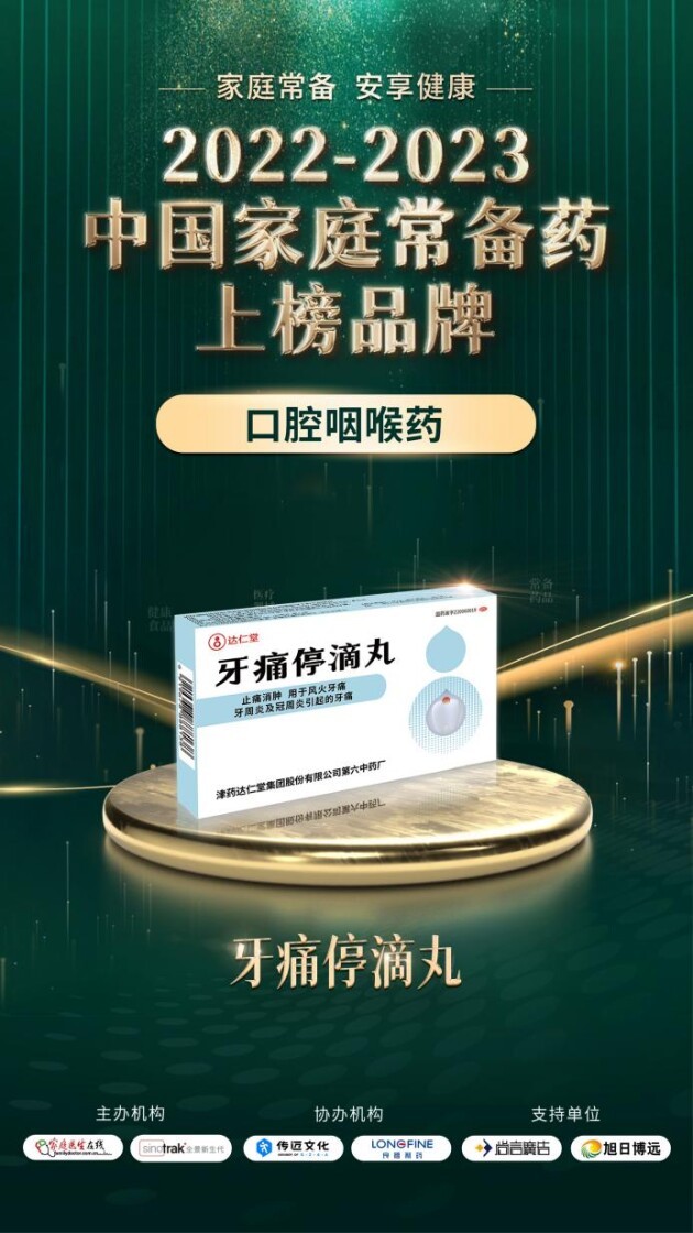 牙痛停滴丸荣登中国家庭常备药“口腔咽喉药”榜单